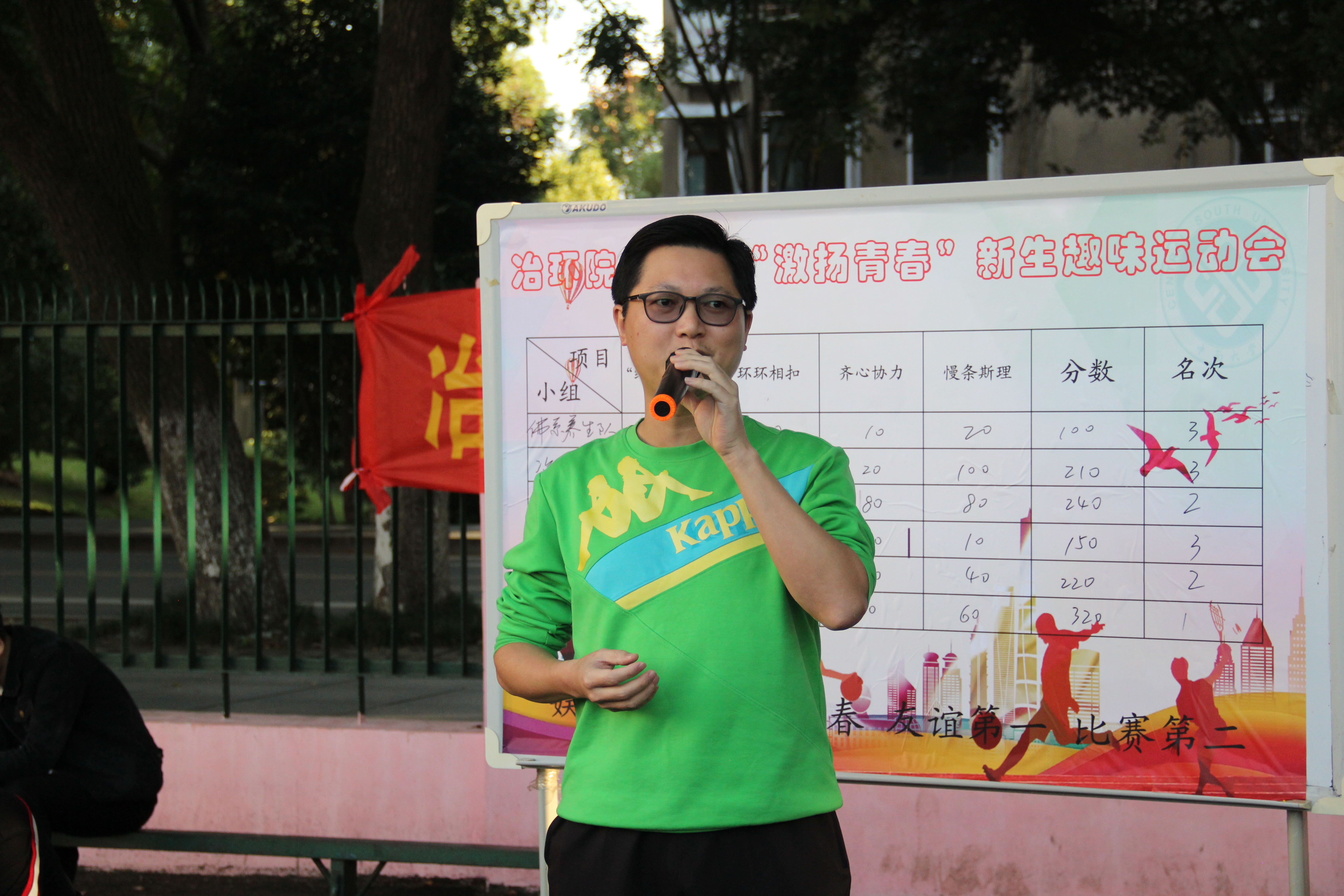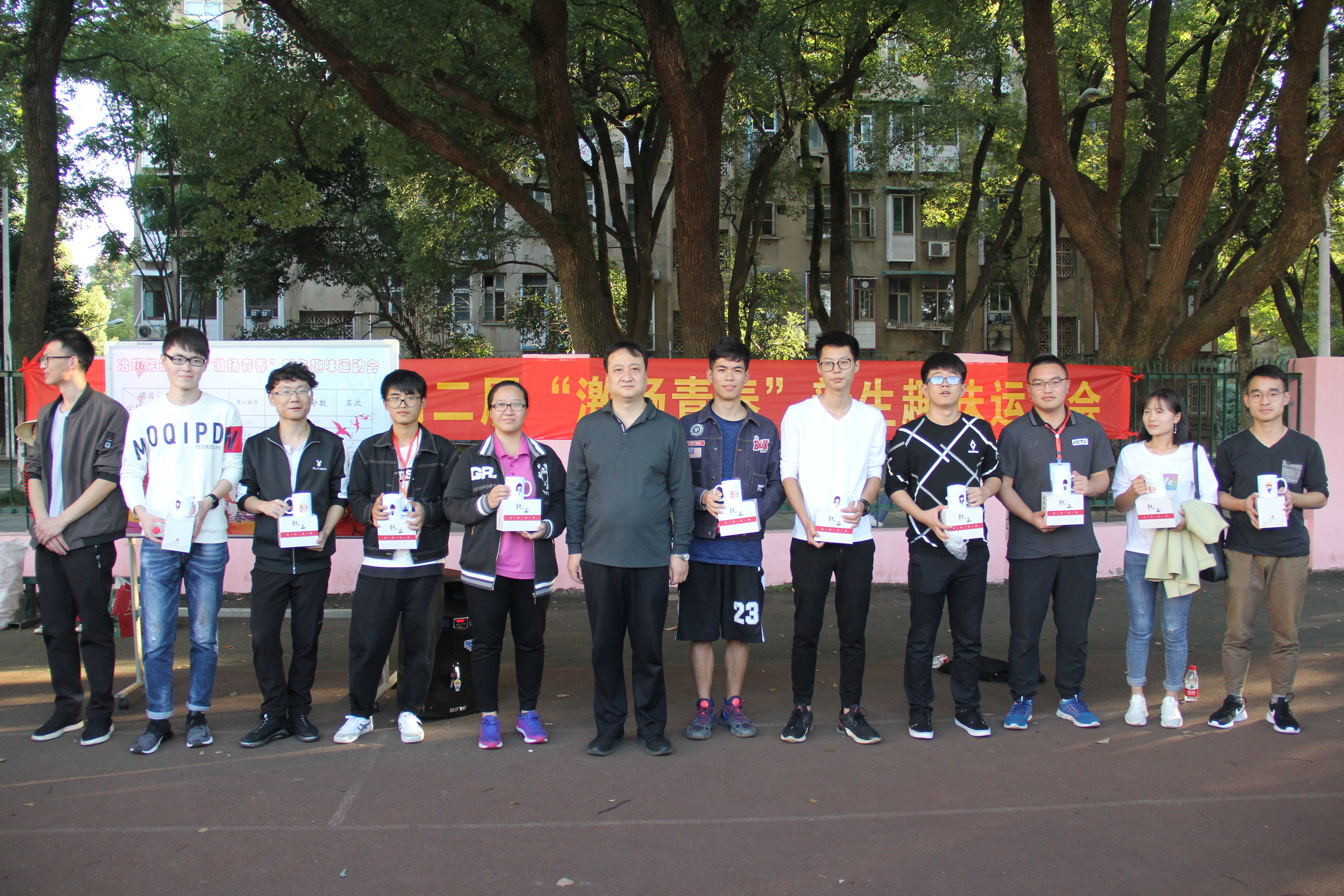 最后田庆华副书记发表讲话,他肯定了大家在趣味运动会中团结互助、顽强拼搏的精神,希望学院研究生在学术科研之余能够多参加有益身体的户外体育活动,并且要加强跨专业、跨课题组同学之间的交流和联系,度过充实而有意义的研究生生涯。