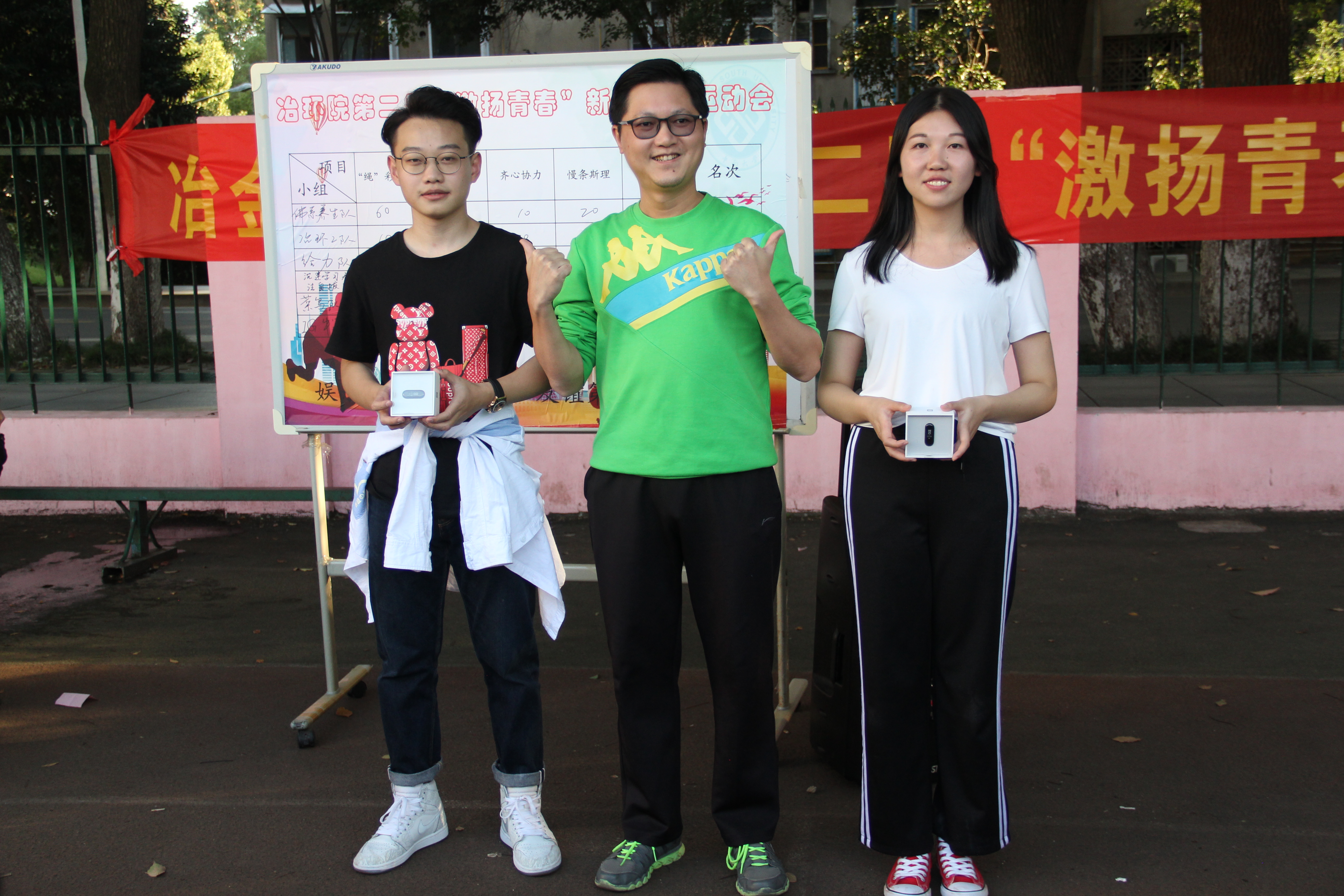 赛后,院主持党委工作副书记田庆华、副院长王志兴和副书记张凯分别为获奖队伍颁发证书和奖金,并进行活动抽奖,中奖者获得了具有学院特色的“小冶小环”卡通定制马克杯、抽绳袋等奖品。