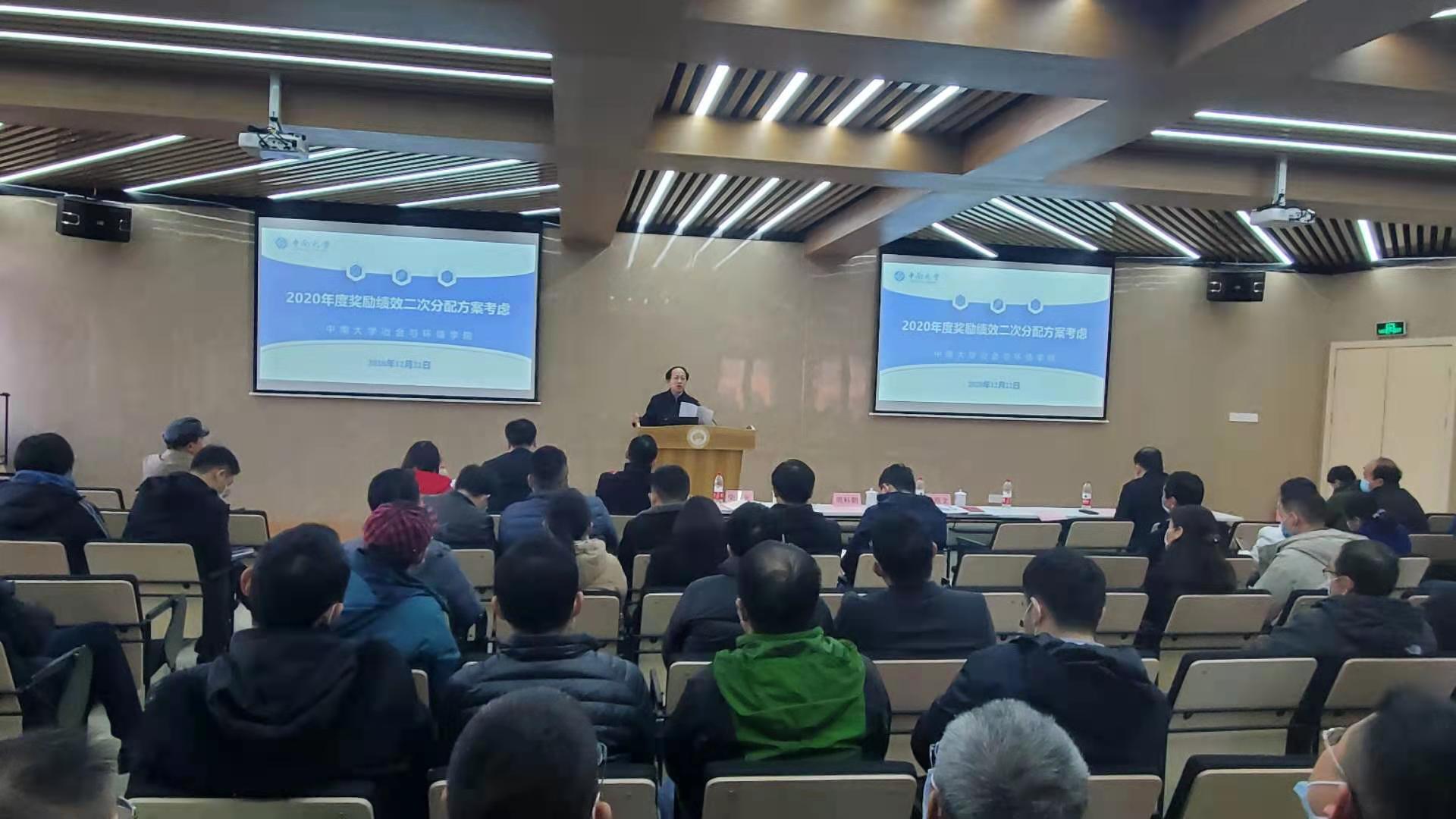 随后,柴立元院长为学院师生解读了《深化新时代教育评价改革总体方案》的核心要义、主要精神,柴院长着重强调了《总体方案》中对高校教师和学生的评价要求,叮嘱大家好好学习消化,深刻领会中央关于深化新时代教育评价改革的重大意义,并以此为改革依据,为下一轮学院学科今后发展打下扎实基础。接着,他介绍了学院2020年度奖励绩效二次分配方案考虑情况。