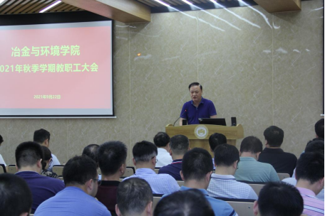9月22日下午,学院在金贵楼420召开全院教职工大会,学院院长柴立元院士、党委书记成琼文等领导班子成员以及全体教职工出席本次会议,会议由陈爱良副院长主持。