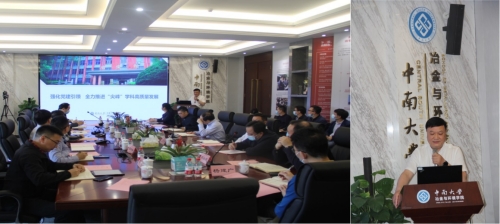 学院党委书记成琼文从人才队伍建设、“十三五”规划完成情况、“十四五”规划等方面进行了工作汇报,他表示,学院始终坚持强化党建引领,全力推进“尖峰”学科高质量发展,学院建立了“筑巢”“引凤”人才引进保障体系,构建了“党建引领-团队支撑-文化传承”三位一体人才引培机制,凸显了队伍建设新思路;持续推动基层党建与人才工作密切结合,以团队为支撑,构建冶金+多学科交叉大平台,凝练三大领域六大方向;赓续冶金文化精神,塑造新时代中南冶金品牌。随后会议围绕人才队伍建设、“三定一聘”、财务政策等工作进行了交流和讨论。