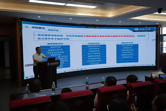 见面会最后,朱忠平副书记就学院入学概况、日常管理等方面向广大家长作了详细的阐述。他表示,学院结合国家资助政策,搭建了丰厚的奖助学金体系和完善的学生资助体系,激励和助力青年学子圆梦中南。学院涌现了一批又一批的杰出校友,为行业的发展奉献蓬勃力量。朱忠平老师承诺,学院会对每一位学生认真负责、严格要求、尽心关爱,把新生们当作自己的孩子、祖国的未来,保障学生的日常生活,同时也希望同学们能不畏困难,自立自强,奋发向上,努力实现青春梦想。对家长较为关心的大类分流等方面的问题,朱忠平副书记也进行了详细的解答。