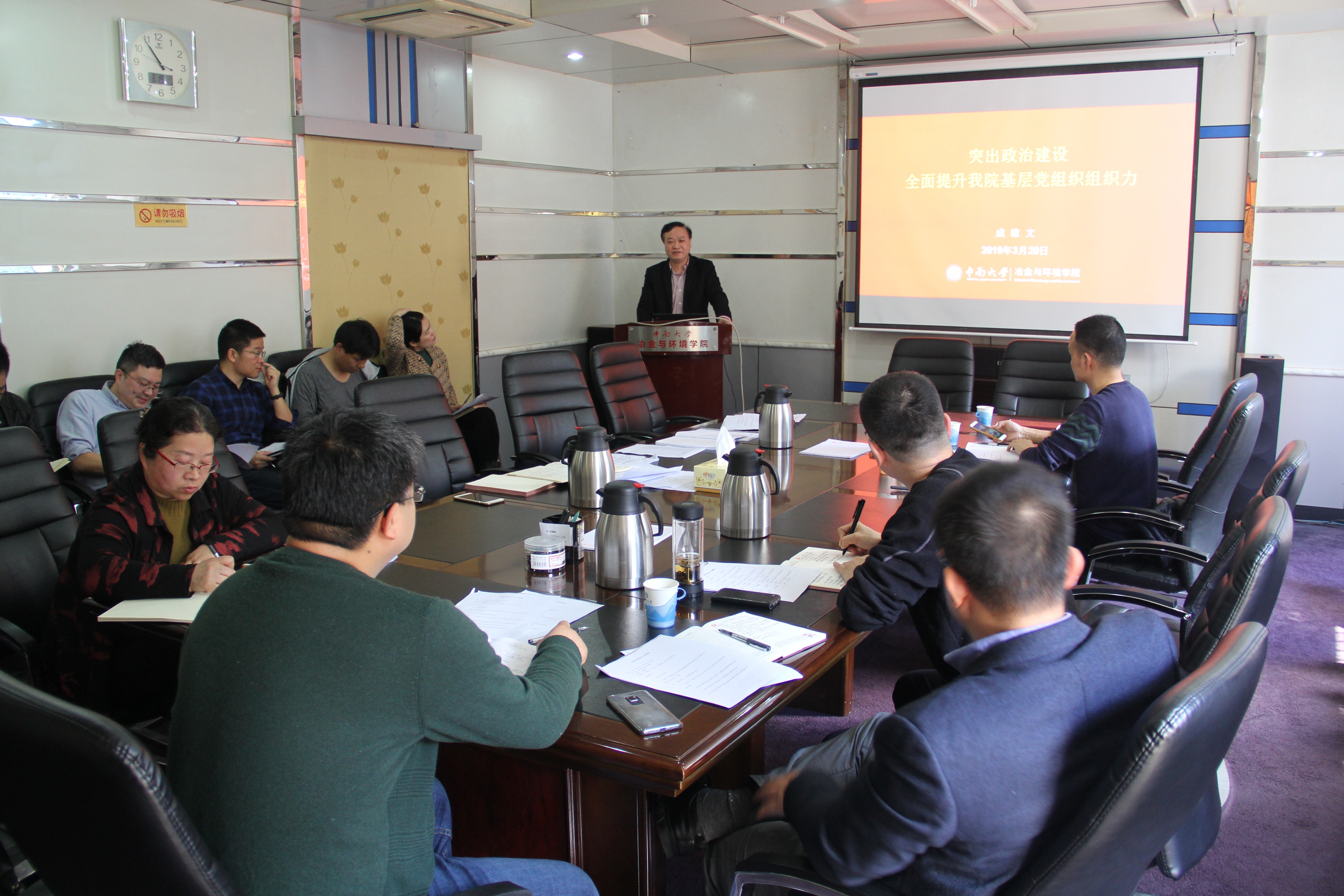 3月20日上午,学院党委在冶金馆201会议室召开党支部书记工作例会。学院党委书记成琼文、院长柴立元及各党支部书记参加会议。会议由组织员侯晓华主持。