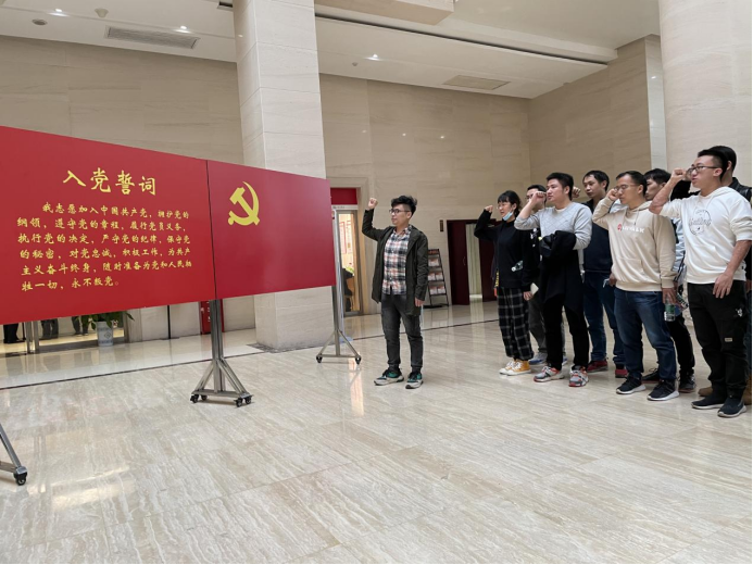 进入陈列馆内,面对鲜红的党旗,全体党员高举右手庄严宣誓,重温对党忠诚的誓言,砥砺初心、牢记使命,坚定理想信念,增强宗旨意识,不忘本真、面向未来、永葆本色。领誓人为yl23455永利集团马亚赟博士。