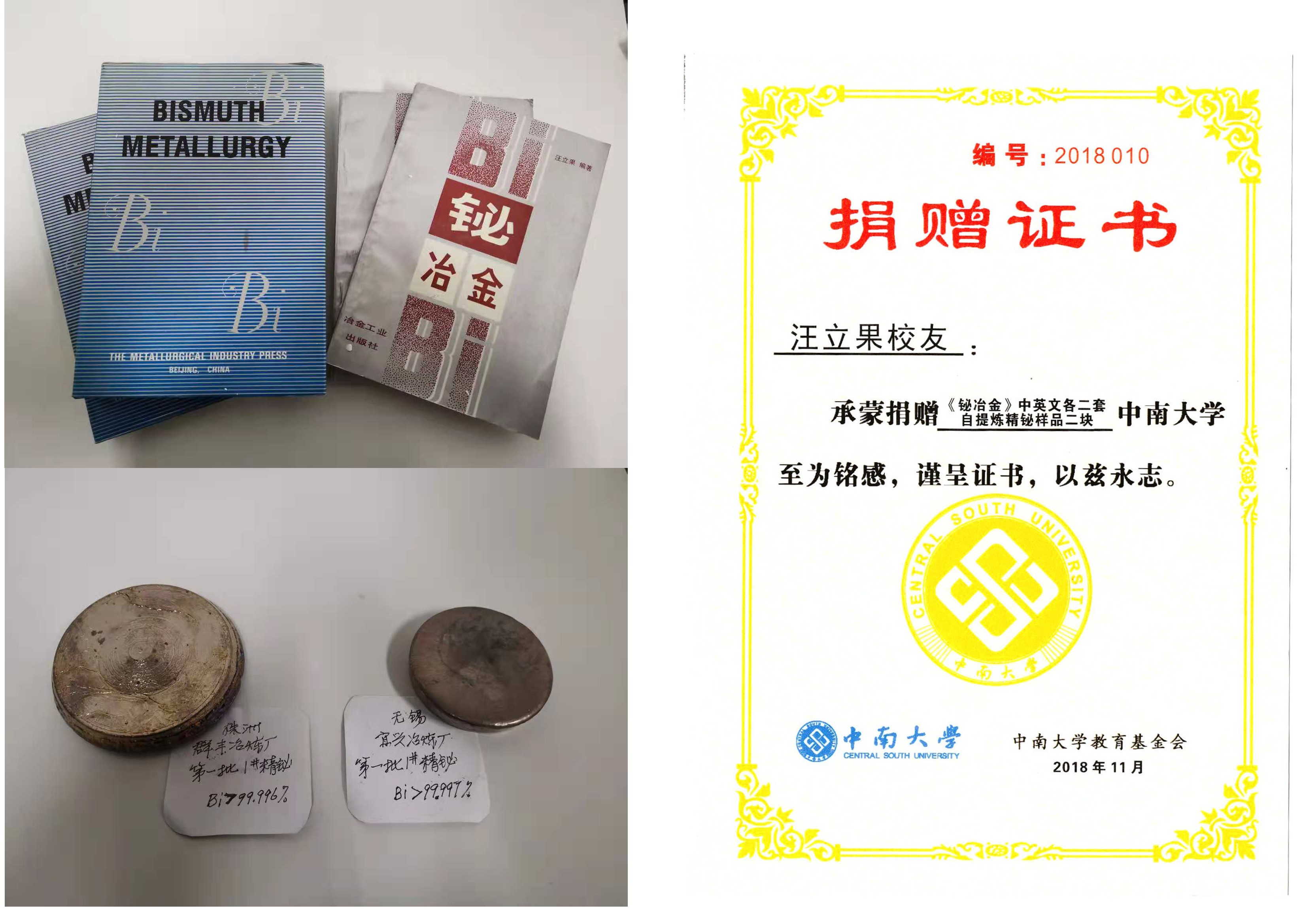 为丰富我院冶金博物馆的藏品,汪立果校友于2018年11月5日向学院捐赠以下物品: